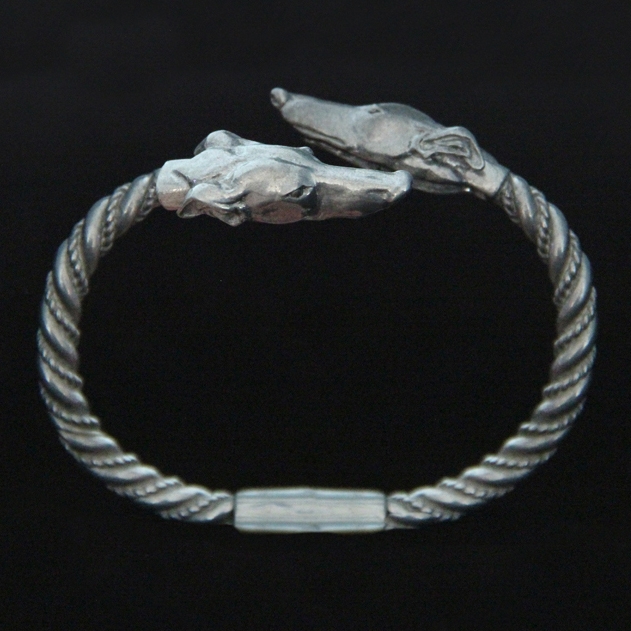 Ce bracelet élégant est parfait pour les passionnés de lévriers. À chaque extrémité du bracelet se trouve une tête de lévrier finement détaillée, apportant une touche subtile et raffinée à ce bijou unique.
