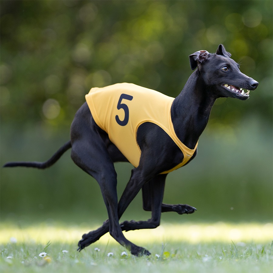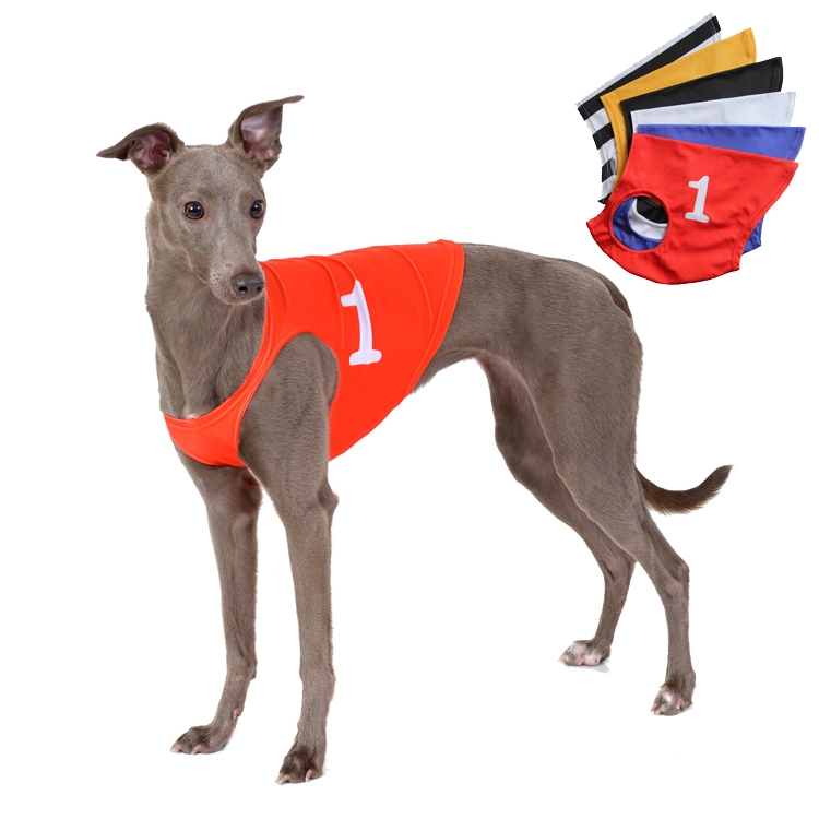 Casaques pour lévriers disponibles en 6 couleurs différentes avec numéros. Les numéros sont imprimés par sublimation, ce qui garantit une excellente visibilité et une tenue durable, même après un usage intensif.