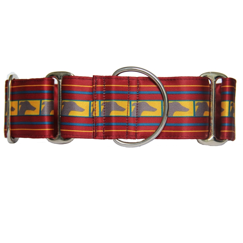 Les colliers martingale sont très utilisés pour les lévriers, car leur morphologie est particulière : leur cou est souvent plus large que leur tête. Un collier classique peut alors facilement glisser.