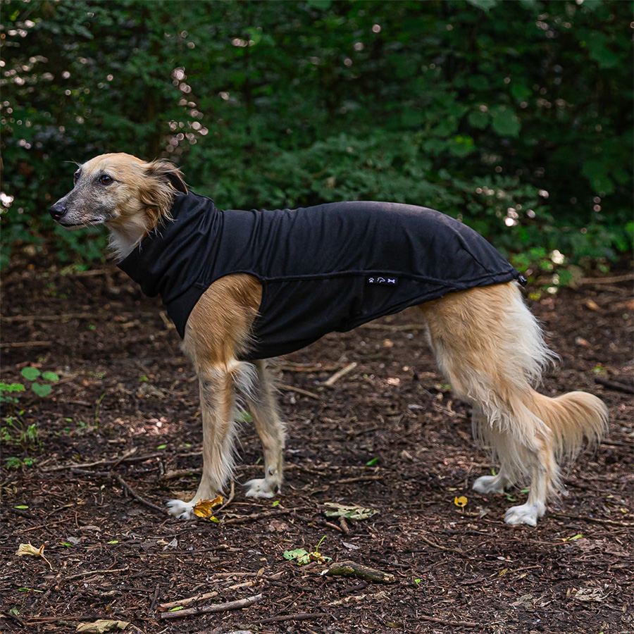 La coupe est parfaitement adaptée à la morphologie fine et athlétique des races telles que les Whippets, Galgos et Greyhounds.