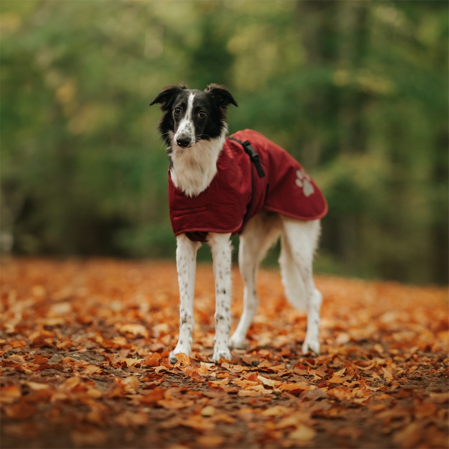 Ce manteaux est adaptée aux lévriers tels que les Whippets, Galgos, Greyhounds, Podencos, Salukis et Petits Lévriers Italiens. En raison de sa coupe spécifique, cette veste n’est généralement pas adaptée aux autres races de chiens.